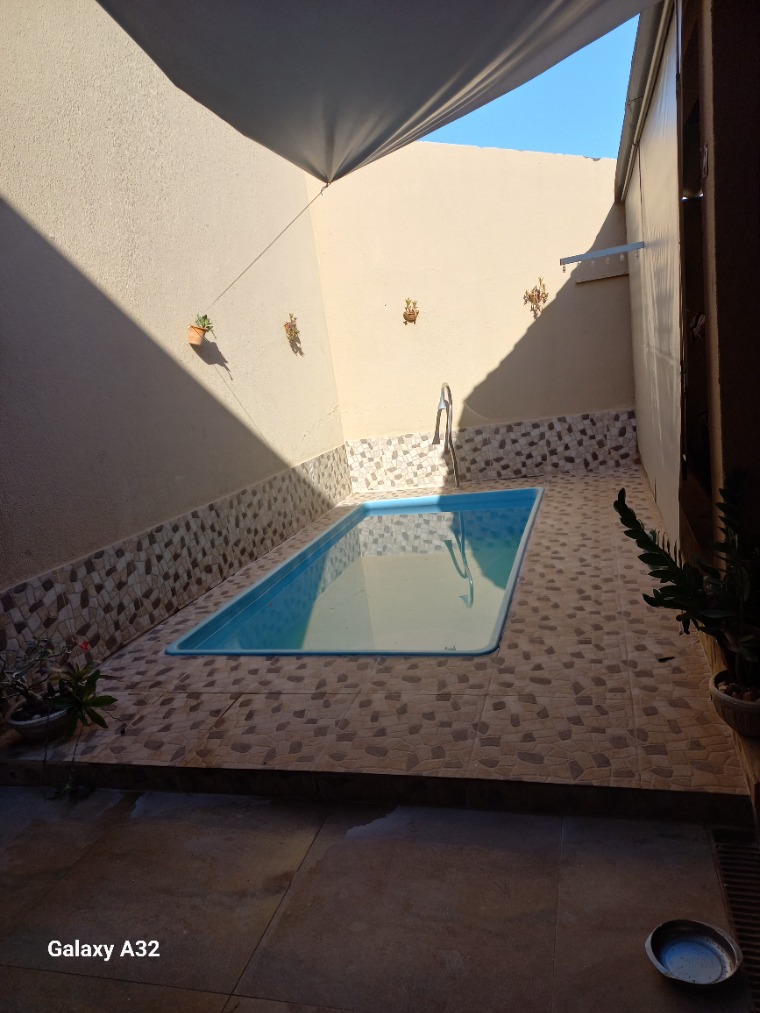 Casa com 3 quarto sendo uma suíte com banheira, Possibilidade de ampliar mais um quarto sala ampla, cozinha Ampla espaço gourmet com Churrasqueira com moveis planejados, wc social, área de serviço-lavanderia, murada, portão eletrônico com sistema de câmeras, piscina com hidro e cascata, Garagem Coberta, área na frente nos fundos. casa no porcelanato dentro e fora. tem umas coisinhas para terminar. casa próximo da feira, mercado, igreja, escola, parque de caminhar, e do batalhão da polícia militar.